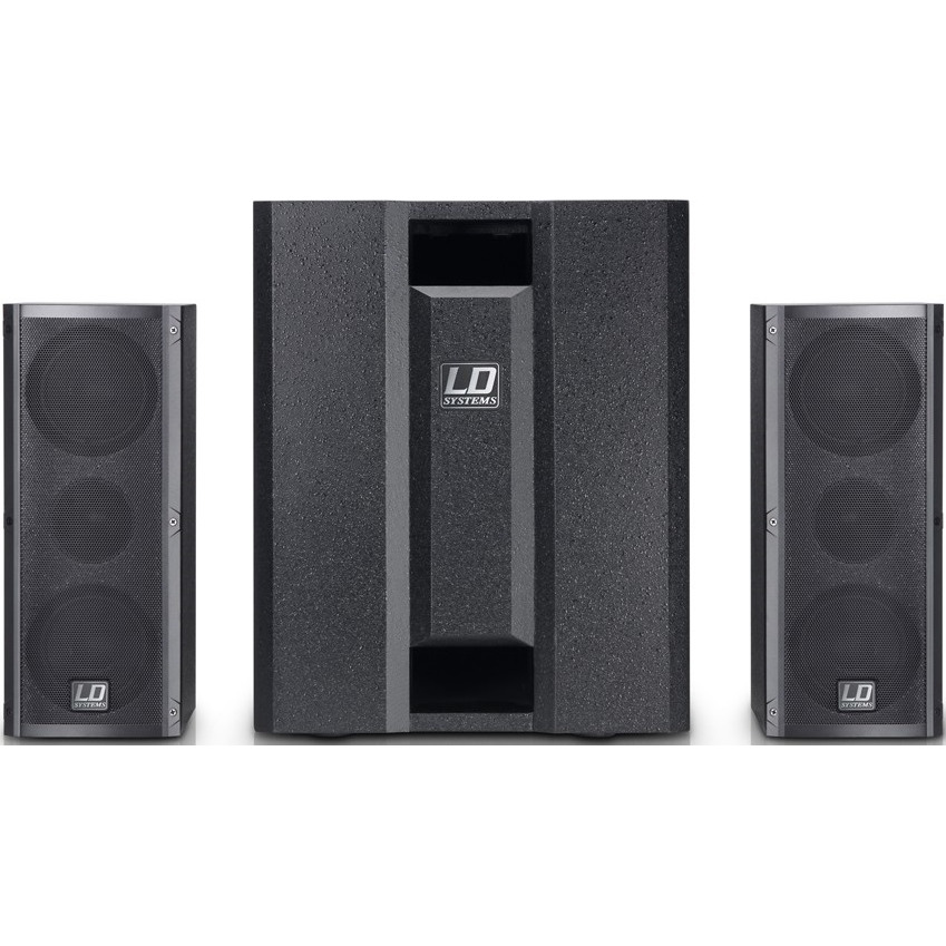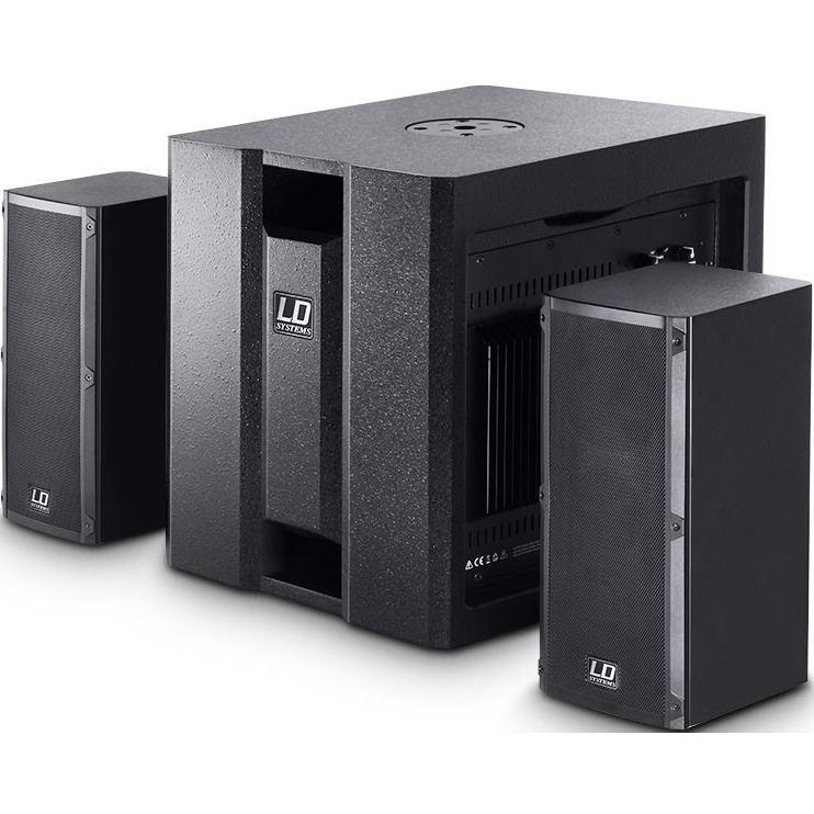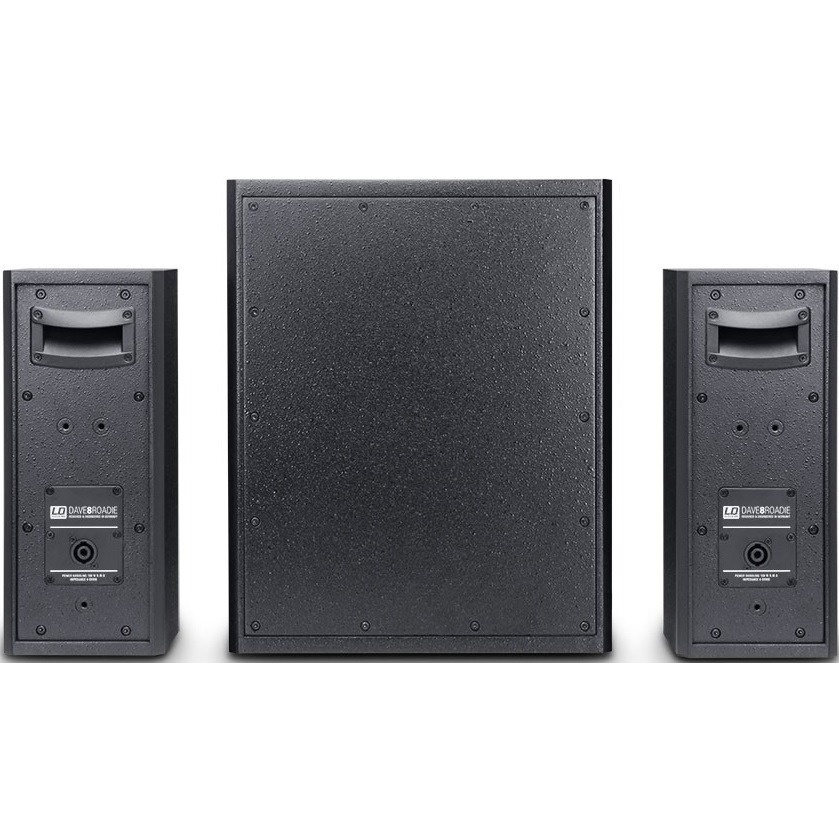 LD Systems DAVE 8 Roadie Активная акустическая система. Состоит из одного активного 8” сабвуфера со встроенным усилителем класса А\В и двух сателлитов (2 х 4”+ 1”). Мощность комплекта 350 Вт и пиковая мощность 1400 Вт. В системе представлены привычные цепи защиты. Встроенный лимитер защищает систему от перегрузки и обеспечивает длительную работу. Имеется три отдельных входных канала, которые можно использовать одновременно. Первый канал имеет 3,5 мм стерео и 6,3 мм монофонический вход для MP3-плееров или гитар с переключателем для выбора нужного входа. Ко второму каналу подключаются динамические микрофоны с помощью комбинированного разъема (XLR/Jack). Третий канал имеет два разъема RCA для компьютеров, а также комбинированный разъем (XLR/Jack) для микшеров.
