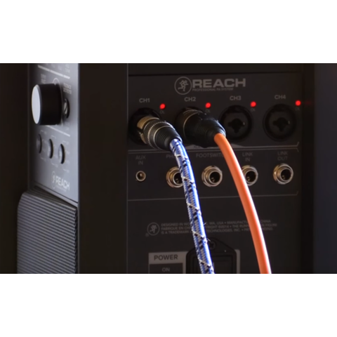 Mackie Reach имеет 4 комбинированных микрофонных/линейных входа XLR + TRS, AUX-вход типа миниджек для подключения MP3-плеера и выход на наушники. Кроме того, есть гнездо для педали управления эффектами, а также вход и выход “Link”, к которым можно подключить другую такую же акустику. Кстати, к входам 1 – 4 можно напрямую подключать гитару или бас.