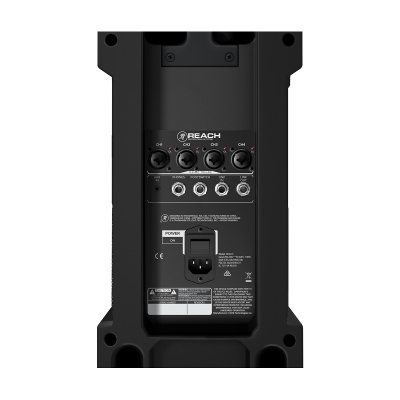 Акустическая система Mackie Reach оснащена двумя 6,5-дюймовыми НЧ/СЧ-динамиками и тремя 1-дюймовыми компрессионными ВЧ-излучателями. При этом использование фирменной технологии ARC™ Array обеспечивает ультра-широкий угол охвата по горизонтали. Ещё одной интересной особенностью является встроенная система персонального мониторинга EarShot™ с парой широкополосных 102-миллиметровых динамиков, усилителем мощностью 2 × 50 Вт и отдельной регулировкой громкости.