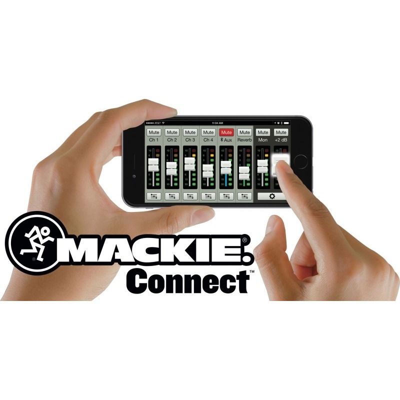 Mackie Reach располагает встроенным шестиканальным цифровым микшером и мощным DSP. Также в наличии есть модуль Bluetooth v3.0, который предназначен не только для потокового воспроизведения аудио, но и для управления акустикой со смартфона или планшета. Для этого используется приложение Mackie Connect™ для iOS- и Android-устройств. Данная программа предоставляет доступ к 3-полосному эквалайзеру на каждом канале, подавителю обратной связи, 16 вокальным/инструментальным эффектам и другим функциям. Также доступно три пресета для сохранения пользовательских настроек.
