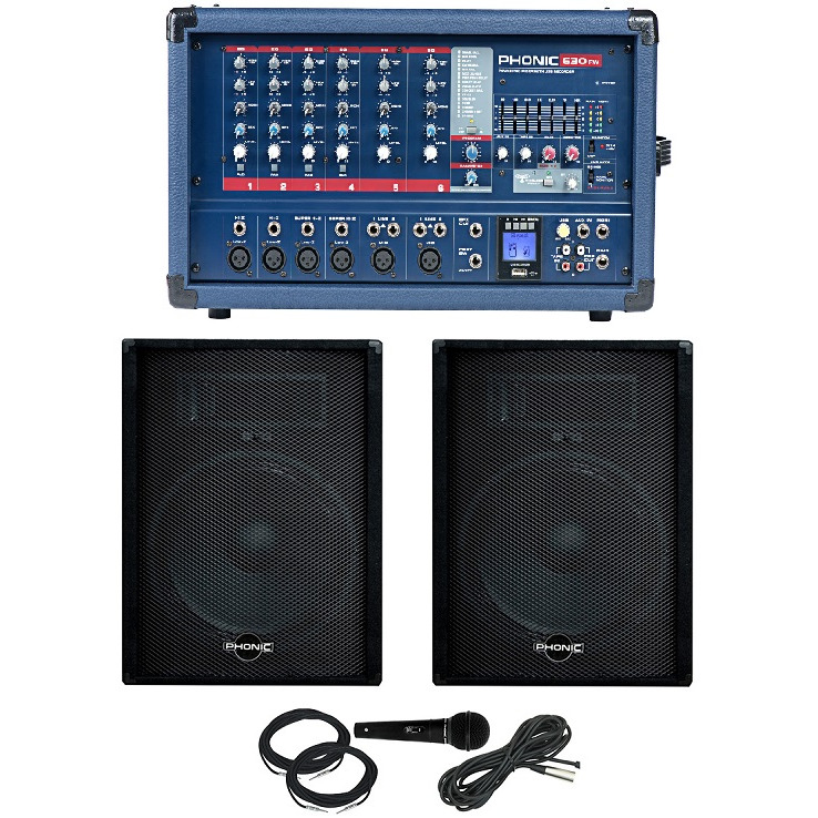 Phonic Powerpod Cruise 12 USB-W Plus - Звукоусилительный комплект из 2-х профессиональных акустических cистем/мониторов 2X340W, Активный 6-ти канальный микшерный пульт, XLR & Jack - 4 канала, XLR & 2 x Jack - 2 канала, DSP мульти-эффект процессор 16 программ 32/40-bit, 1 AUX, 7-и полосный графический master EQ. Микрофон и акустические кабеля. Отличительной особенностью является функционал микшера-усилителя. Теперь он имеет встроенный USB плеер/рекордер и встроенный Bluetooth модуль для воспроизведения аудио информации с планшета, смартфона.