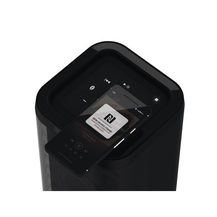 Reloop Groove Blaster BT - Переносная акустическая система с высоким показателем уровня звукового давления . Глубокие басы благодаря НЧ-драйверу 6” . Bluetooth 4.0: диапазон передачи сигнала до 30м . NFC: беспроводная связь обеспечивает быстрое подключение к поддерживаемым устройствам . Точное разделение частот по 3 направлениям . Расположение динамиков: 1 x 6” НЧ-динамик, 2 x 3” СЧ-драйвера, 2 x 1” твитера . Функция Smart Link: беспроводное подключение двух колонок (функция сопряжения) . Выходная максимальная мощность 100 Вт, усилитель мощности класса D . Встроенная литиево-ионная батарея, время работы до 10 часов (6.600 мА/ч) . USB-зарядка для других устройств . Панель управления воспроизведением на верхней части колонки . Отличное дополнение к существующим портативным схемам . Отделение для адаптера со светодиодными индикаторами уровня заряда батареи и подключения к сети .Металлическая решетка на передней панели для обеспечения долговечности корпуса и защиты внутренних компонентов акустической системы