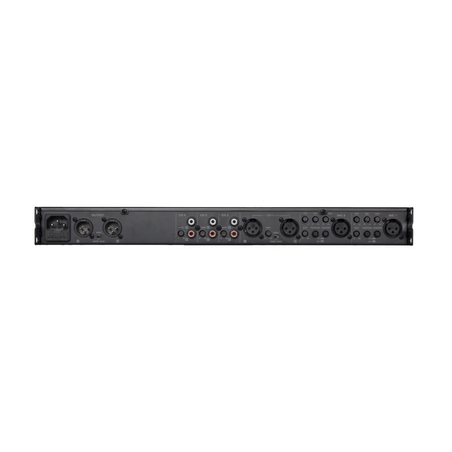 PRE16 - простой в использовании, но вместе с тем функционально мощный 6-канальный стереофонический монтируемый в стандартную стойку 19" предусилитель высотой всего 1U. Он является идеальным решением для широкого диапазона различных приложений, требующих микширования аудиосигналов нескольких источников с передачей результирующего микса на озвучивание одной зоны. Предусилитель отличается высокой надежностью, простотой инсталляции и оперативностью настройки, и вместе с тем поддерживает работу с источниками музыкальных аудио сигналов практически всех типов. Конструктивно прибор выполнен в формате 6-канального стереофонического предусилителя, в котором два канала являются микрофонными входами, в тракт каждого из которых включен трех-полосный эквалайзер, предусмотрены регуляторы чувствительности, переключатели фантомного питания и выключатели функции дакинга. При включении переключателя фантомного питания на соответствующий микрофонный вход подается фантомное питание 15 В, позволяющее коммутировать с прибором конденсаторные микрофоны. Функция дакинга позволяет приглушать сигналы остальных каналов при появлении сигнала на микрофонном входе. Чтобы активировать ее, просто включите переключатель функции дакинга соответствующего микрофонного входа. Остальные четыре входных канала рассчитаны на подключение источников сигнала линейного уровня. Один из этих входов является стереофоническим балансным, остальные три - небалансные. Вся коммутация осуществляется с помощью расположенных на тыльной панели PRE16 разъемов. А на лицевой панели находятся регуляторы громкости каналов, мастер-громкости, а также 2-полосного мастер-эквалайзера.