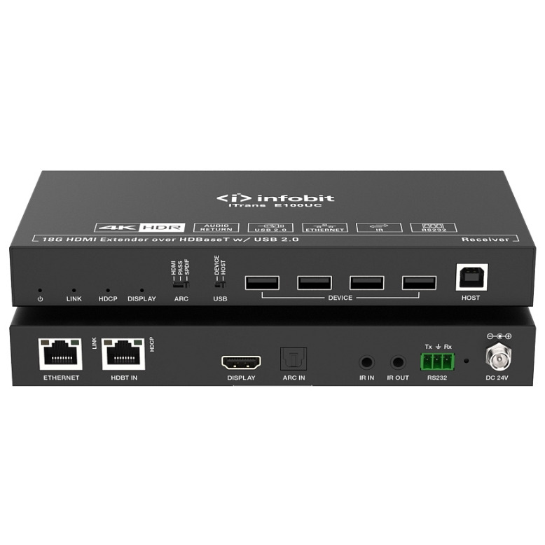 HDMI-удлинитель iTrans E100UC 18G состоит из передатчика и приемника. iTrans E100UC позволяет передавать видеосигнал 4K60 Гц или 1080p на расстояние до 328 футов (100 м) по одному кабелю CAT6A без сжатия. Он поддерживает деэмбеддинг звука и ARC. Также поддерживается двунаправленное ИК-управление, сквозное управление через USB и RS232 и расширение Ethernet. Передатчик и приемник могут питаться друг от друга, и в системе требуется только один адаптер питания.