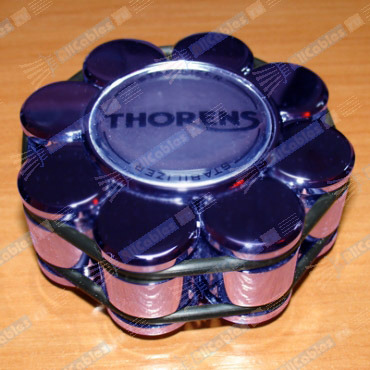 Стабилизатор Thorens улучшает контакт виниловой пластинки с диском проигрывателя, оснащенным фетровым или каучуковым матом. 8 сбалансированных грузов общим весом в 550 г. помогают исправить небольшие деформации пластинок, а так же успешно поглощают их вибрацию и резонанс. Стабилизатор поставляется в элегантной деревянной шкатулке.