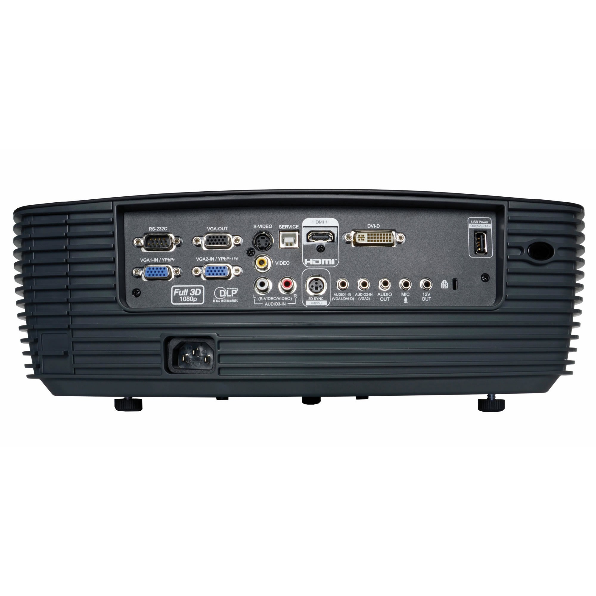Разъемы | HDMI (с поддержкой 1.4a 3D), DVI-D, 2x VGA (RGB/YPbPr), S-Video, композит, 3 x аудиовход (RCA/3.5 мм), Mic 3.5 мм, аудиовыход 3.5 мм, VGA выход, RS232, 2x USB-B (Remote Mouse/Service), USB-A питание, + триггер 12 В |