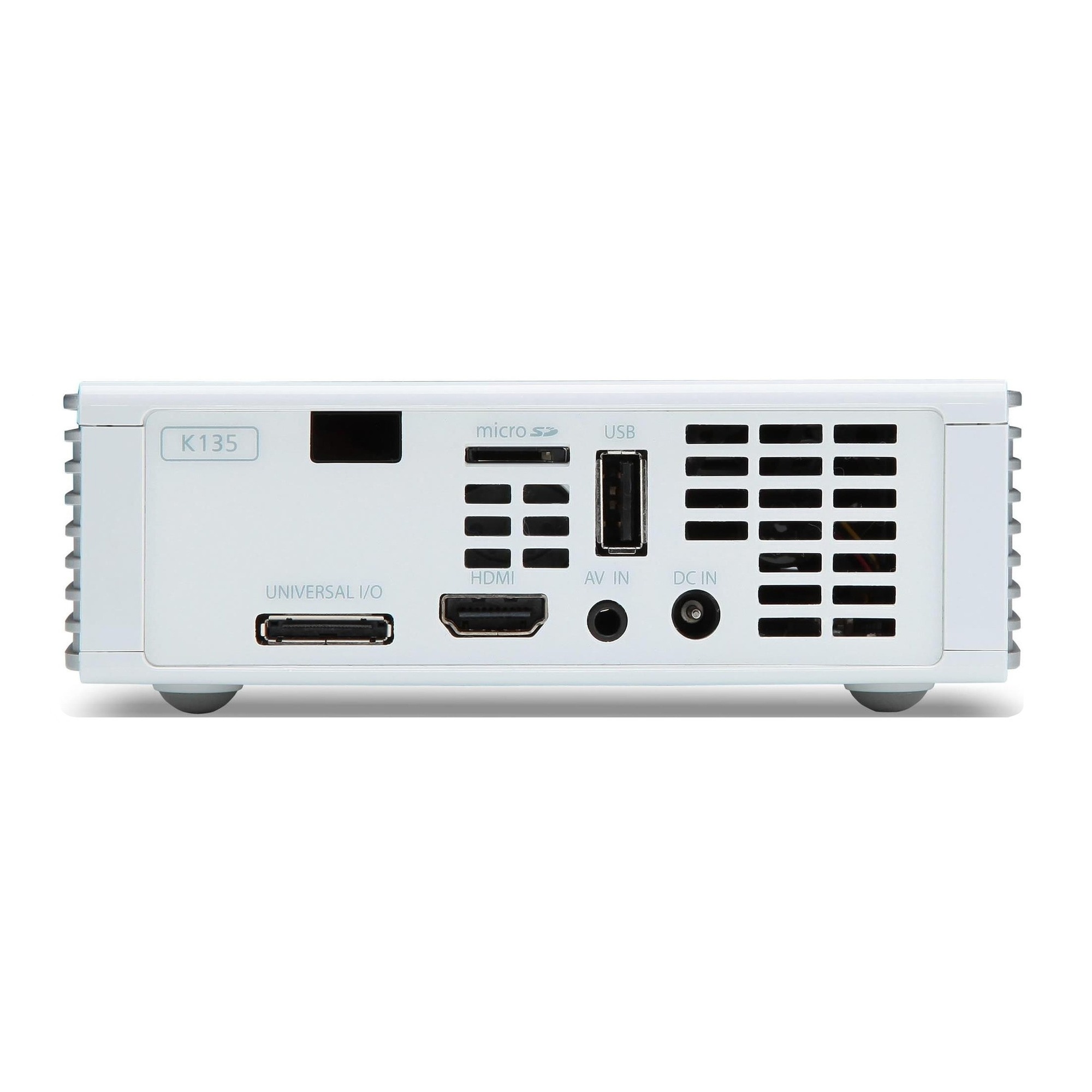 Acer K135i - ультрапортативный широкоформатный проектор, технология DLP, поддержка 3D, поддержка HDTV, разрешение 1280x800, световой поток 600 лм, контрастность 10000:1, подключение по HDMI, вывод изображения с USB-флэшек.
