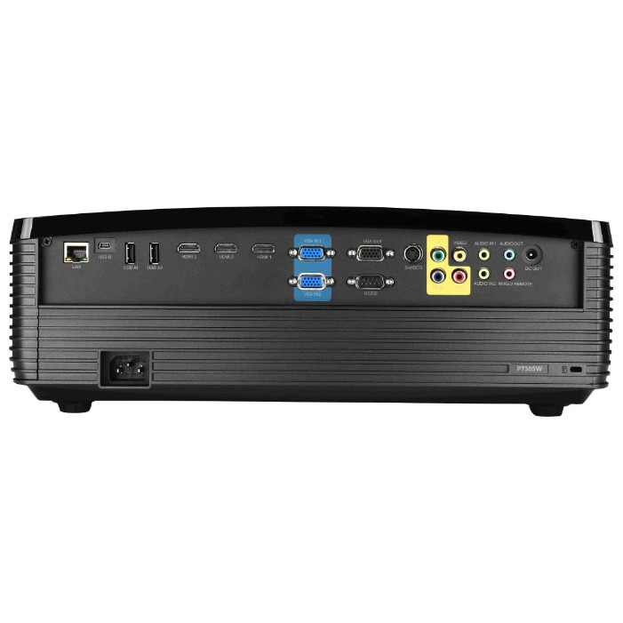Acer P7305W - стационарный широкоформатный проектор, технология DLP, поддержка 3D, поддержка HDTV, разрешение 1280x800, световой поток 5000 лм, контрастность 10000:1, подключение по VGA (DSub), HDMI, подключение к сети Ethernet.