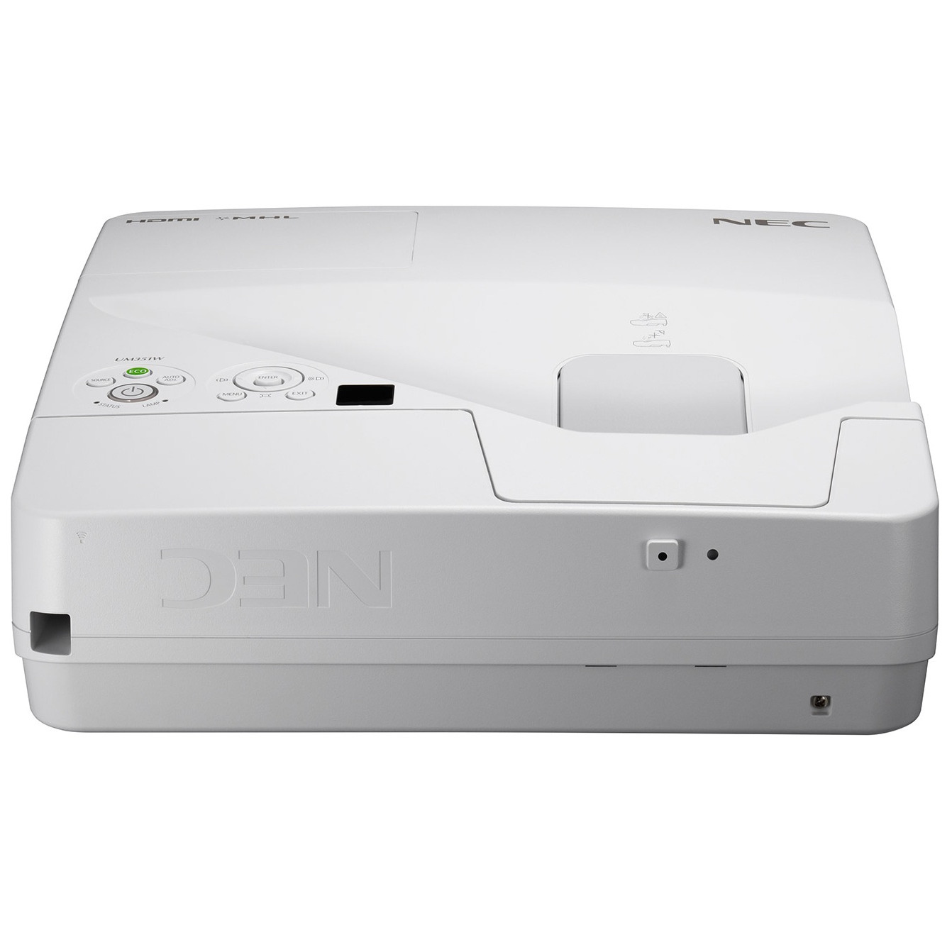 Ультракороткофокусный проектор NEC UM351W обеспечивает отсутствие теней и бликов на изображении и идеально подходит для небольших аудиторий и конференц-залов.