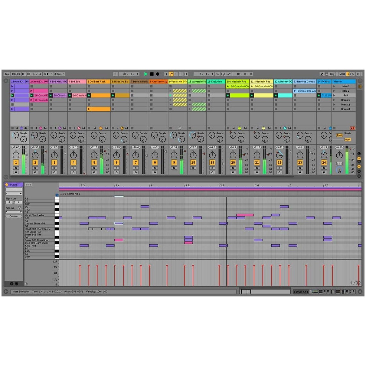 В версии Suite достаточно инструментов и тембров, чтобы заниматься аранжировкой, композицией и сведением, не пользуясь сторонними плагинами. Внутренняя библиотека насчитывает 70 Гб аудиоматериала для любых жанров и 55 инструментов пространственной, динамической и спектральной обработки. DAW работает с любыми MIDI-контроллерами, а гибкий маппинг позволяет назначать элементы интерфейса и функции программы на любую клавишу или регулятор. Live может работать и с полностью аналоговыми инструментами по CV (при наличии DC-coupled аудиоинтерфейса).