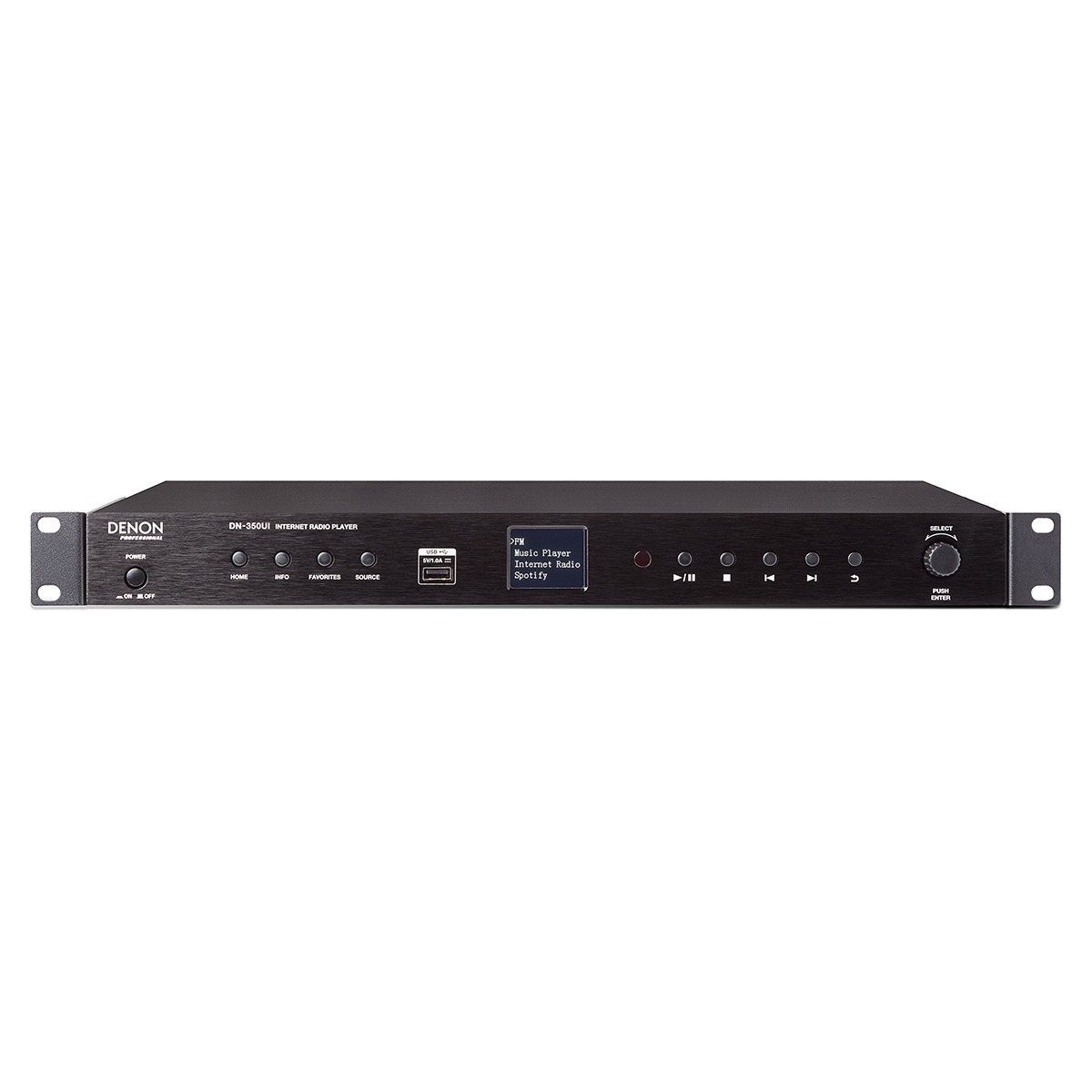 Denon DN-350UI – это профессиональный рэковый мультимедийный проигрыватель интернет-радио и аудиофайлов, способный выполнять функцию FM-тюнера.