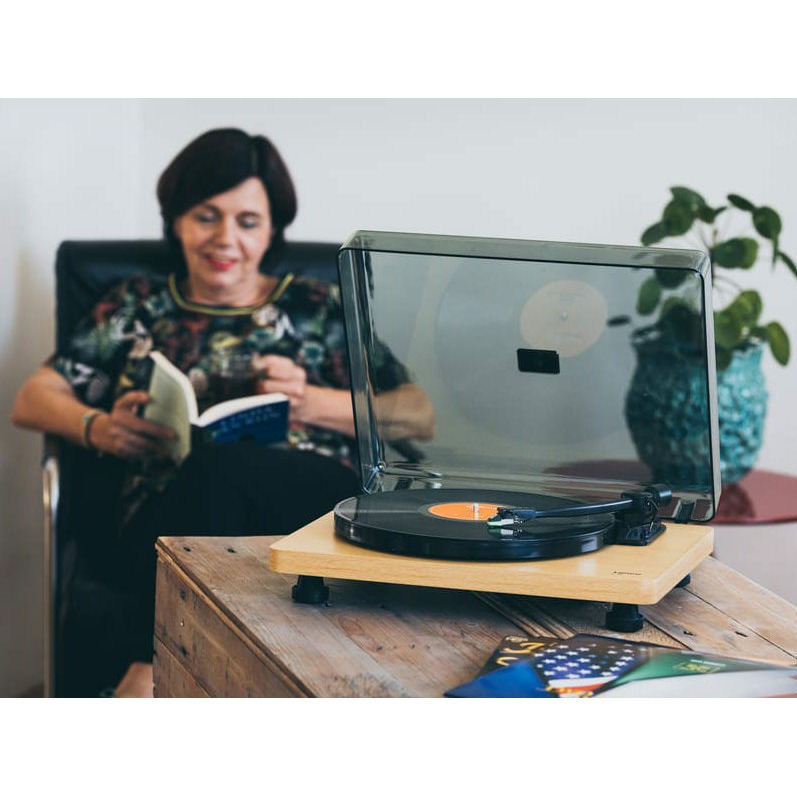 Проигрыватель оснащен встроенным фонокорректором, поэтому его можно подключить к любому свободному линейному входу интегрального усилителя или AV-ресивера. При этом на задней панели Lenco L-30 имеются стандартные гнезда RCA аналогового выхода, поэтому меломан может выбрать любые подходящие соединительные кабели на свой вкус. Интересной дополнительной функцией в Lenco L-30 является встроенный ЦАП c USB-выходом, благодаря чему аналоговые записи с пластинок можно сохранить в виде файлов в памяти ПК. При сравнительно скромной стоимости данная модель обладает надежной конструкцией и хорошим звучанием. Lenco L-30 станет отличным выбором для начинающих меломанов, желающих приобщиться к миру винила.