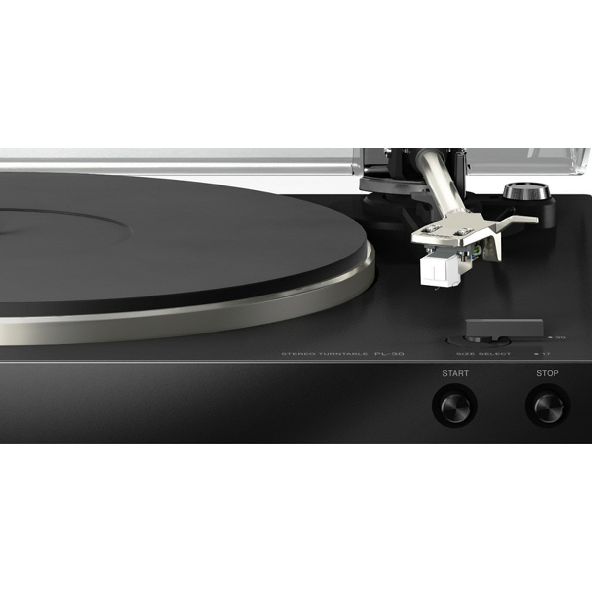 PL-30-K-полностью автоматический: по нажатии одной кнопки тонарм располагается точно над заходными канавками и плавно опускается на пластинку, начиная воспроизведение. Когда сторона пластинки доиграет до конца, тонарм самостоятельно вернется в исходное положение.