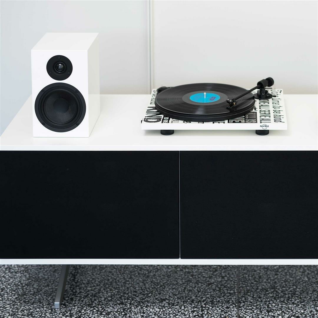 Проигрыватель винила Pro-Ject Hard Rock Cafe создан в сотрудничестве с Hard Rock Cafe. Стол проигрывателя покрыт уникальной росписью из Hard Rock Cafe, что делает проигрыватель не просто отличной "вертушкой", но и обязательным атрибутом для каждого ценителя Hard Rock'а. Проигрыватель поставляется с предустановленным MM-картриджем OM5e, от пионеров винила Ortofon. Проигрыватель выпущен ограниченной партией, что делает его более ценным для ценителей качественного звука и любителей тяжёлой музыки.