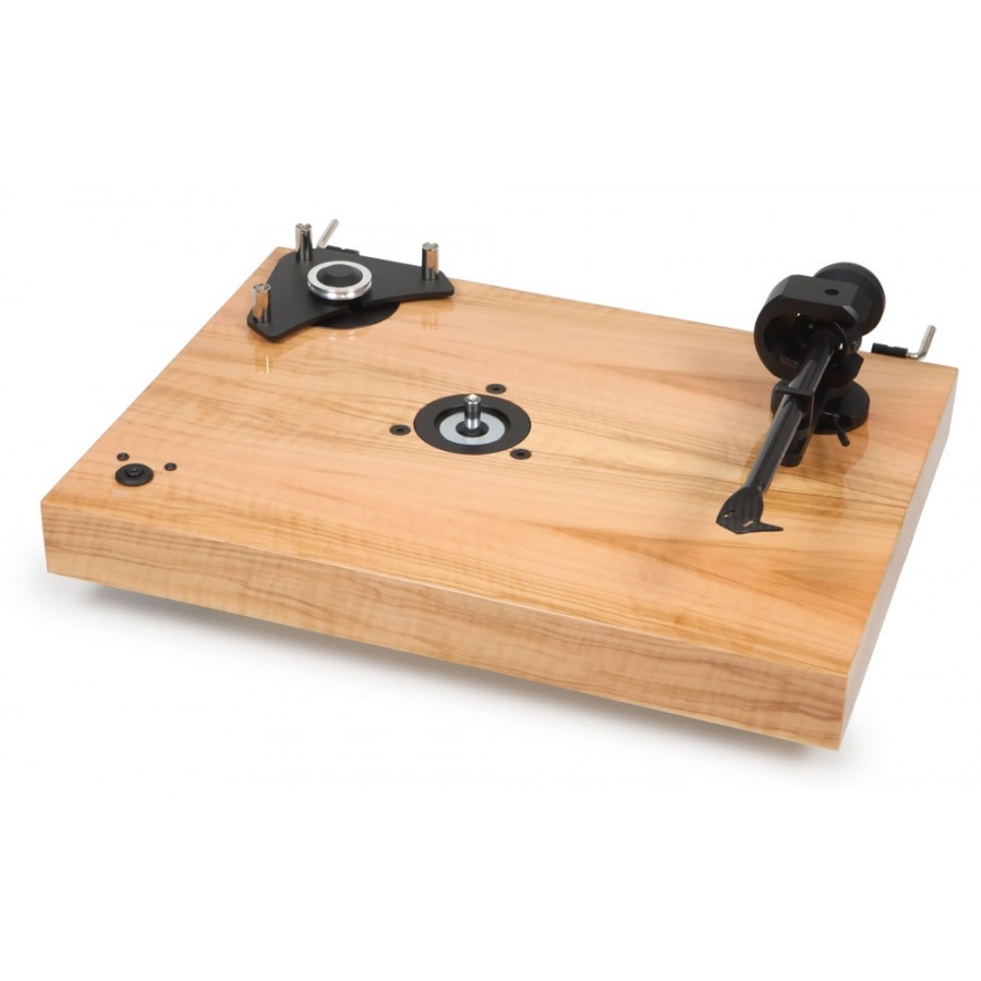 Достаточно тяжелый опорный диск из металлического сплава демпфирован термопластическим эластомером (TPE), а в качестве материала для приклеенного к этому диску мата используется переработанный винил. Такой «сэндвич» превосходно противостоит резонансам и вращается плавно и бесшумно, чему в немалой степени способствует основной инвертированный керамический подшипник с магнитным подвесом. Для прижима виниловой пластинки в комплекте имеется 800-граммовый клэмп.
