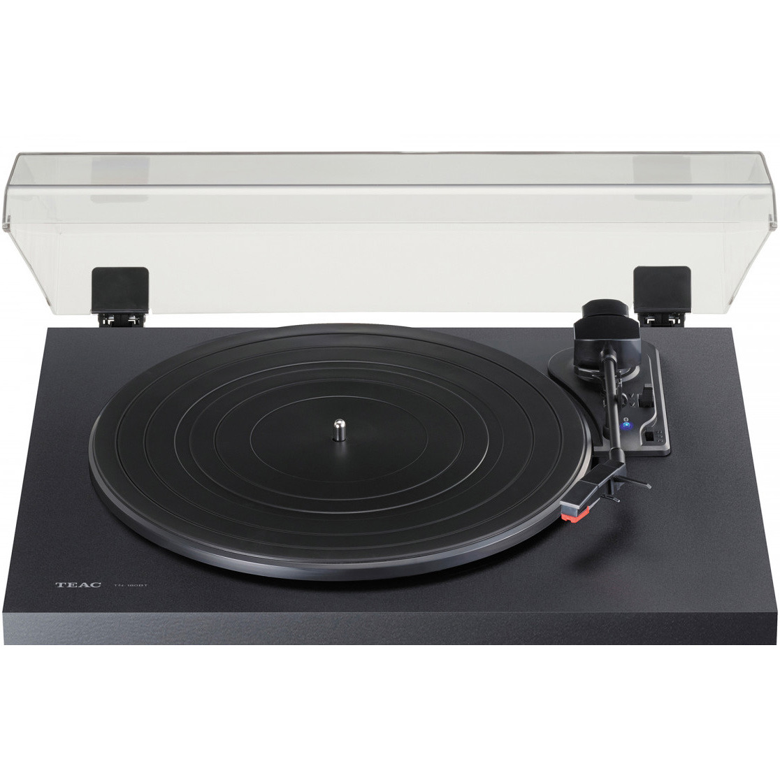 Аппарат имеет надежное шасси из MDF с хорошими антирезонансными характеристиками, которое защищает тонарм и диск от внешних вибраций. Внешняя отделка шасси выполнена под вишневое дерево, и TEAC TN-180BT будет хорошо смотреться в интерьере. Проигрыватель поставляется полостью готовым к использованию и данная модель рассчитана на новичков в области аналогового аудио. В то же время продуманная конструкция и точная заводская настройка обеспечивают TEAC TN-180BT хорошее качество звука и надежную работу в течение длительного времени. Проигрыватель имеет электронное переключение скорости вращения диска 33/45/76 об/мин, что наверняка понравится владельцам коллекций винила, состоящих их самых разных пластинок, в том числе и ретро. В проигрывателе TEAC TN-180BT используется пассиковый привод, который в недорогих моделях обеспечивает меньшие вибрации и более стабильное вращение пластинки, чем Direct Drive. Весьма полезной функцией в TEAC TN-180BT является автостоп, который возвращает на место тонарм после окончания прослушивания пластинки. Плавно и точно опустить звукосниматель на выбранную композицию на виниловом диске позволяет демпфированный микролифт. Установленный на проигрывателе MM-звукосниматель изготовлен на заказ. Удобство подключения TEAC TN-180BT обеспечивается наличием в нем встроенного фонокорретора, а также модуля Bluetooth. Таким образом, для прослушивания музыки с этого проигрывателя подойдут даже Bluetooth-наушники, имеющиеся в распоряжении многих владельцев смартфонов и планшетных ПК. При желании встроенный фонокорректор можно отключить, и снимать сигнал непосредственно со звукоснимателя проигрывателя. В комплекте с TEAC TN-180BT поставляются все необходимые аксессуары: резиновый коврик для опорного диска, соединительный кабель с разъемами RCA, прозрачная пылезащитная крышка. Данный проигрыватель станет отличным приобретением для всех, кто хотел бы с сравнительно скромную сумму получить современную и удобную в использовании модель с хорошими звуковыми характеристиками.