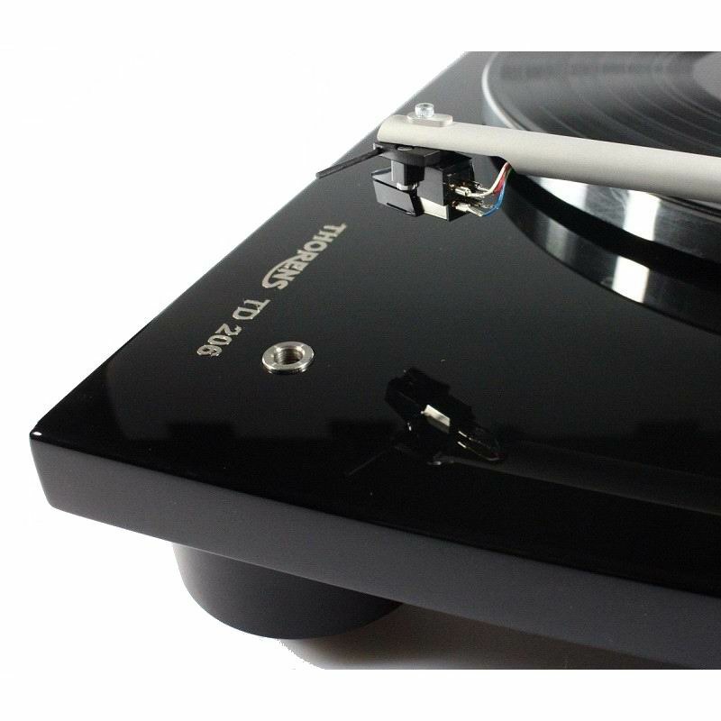 Проигрыватели Thorens TD 206 выпускаются в отделке черным, белым или красным рояльным лаком.