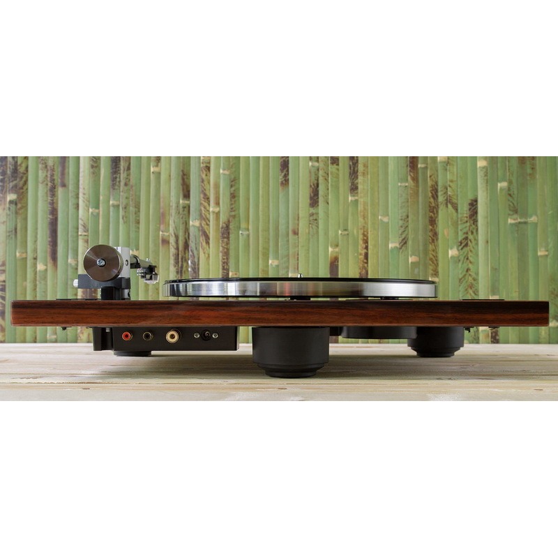 Шасси проигрывателя изготовлено из ДВП, обладающей хорошими демпфирующими свойствами, и устанавливается на три регулируемых антивибрационных опоры. Опорный диск двухслойный, изготовленный из комбинации высококачественного алюминия и акрила. Эти слои разделены тонким листом картона для оптимальной механической развязки. Двигатель, «позаимствованный» у модели TD 309, имеет функцию регулировки натяжения приводного ремня, а также тонкой подстройки скорости вращения. Двигатель механически изолирован от корпуса вертушки с помощью суб-шасси, изготовленного из высококачественного пластика, а плоский приводной ремень для этих проигрывателей разработан компанией Thorens.