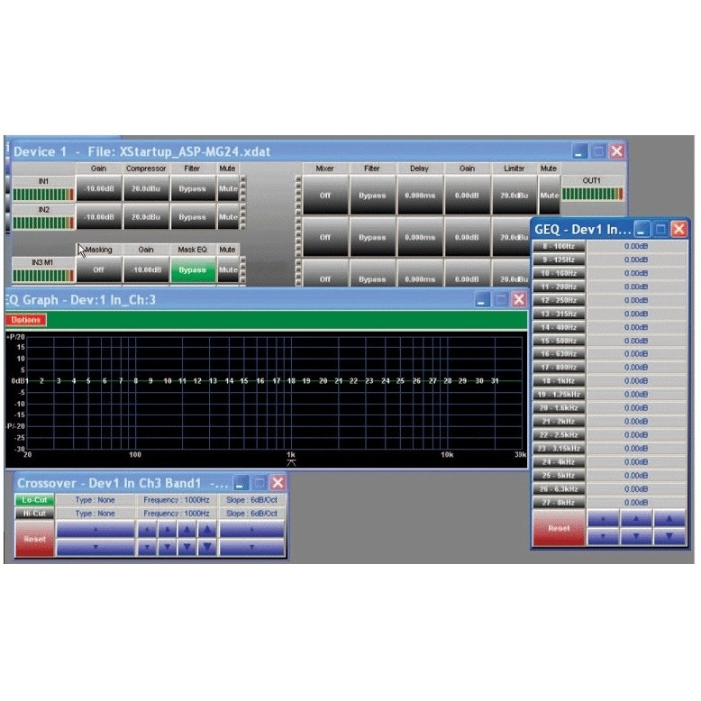 - Интуитивный графический интерфейс для первичных настроек процессора ASP-MG24 разработан так, чтобы упростить даже сложные инсталляции, которые используют многочисленные источники звука совместно с маскированием в одной и той же зоне