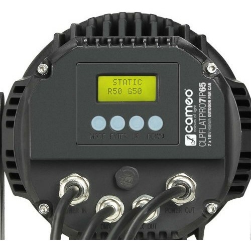 CLPFLATPRO7IP65 обеспечивает ведущий, ведомый и автономный режим работы и в общей сложности 5 режимов DMX с многочисленными функциями, интегрированными программами и светодиодным дисплеем с 4-мя кнопками управления (режим, ввод, вверх и вниз) для легкого ручного управления.