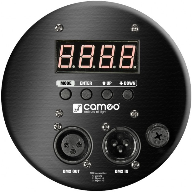Он управляется либо через протокол DMX (3-полюсный XLR) с шестью каналами управления, в режиме ведущий / ведомый или автономный режим (управление звуком, изменение цвета, сплошные цвета). Он оснащен встроенным микрофоном и работает быстро и легко, используя четыре кнопки и светодиодный дисплей.