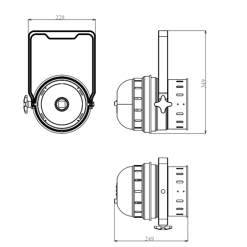 Также прибор располагает 3-значным светодиодный дисплеем с тремя кнопками, управлением DMX с использованием 3, 6 либо 7 каналов, звуковой активацией, автоматическими программами, стробоскопом, диммером и цветовыми пресетами. Лишь 30 Вт потребляемой мощности и угол раскрытия луча 120 градусов позволяют получить экономичное и равномерное освещение.