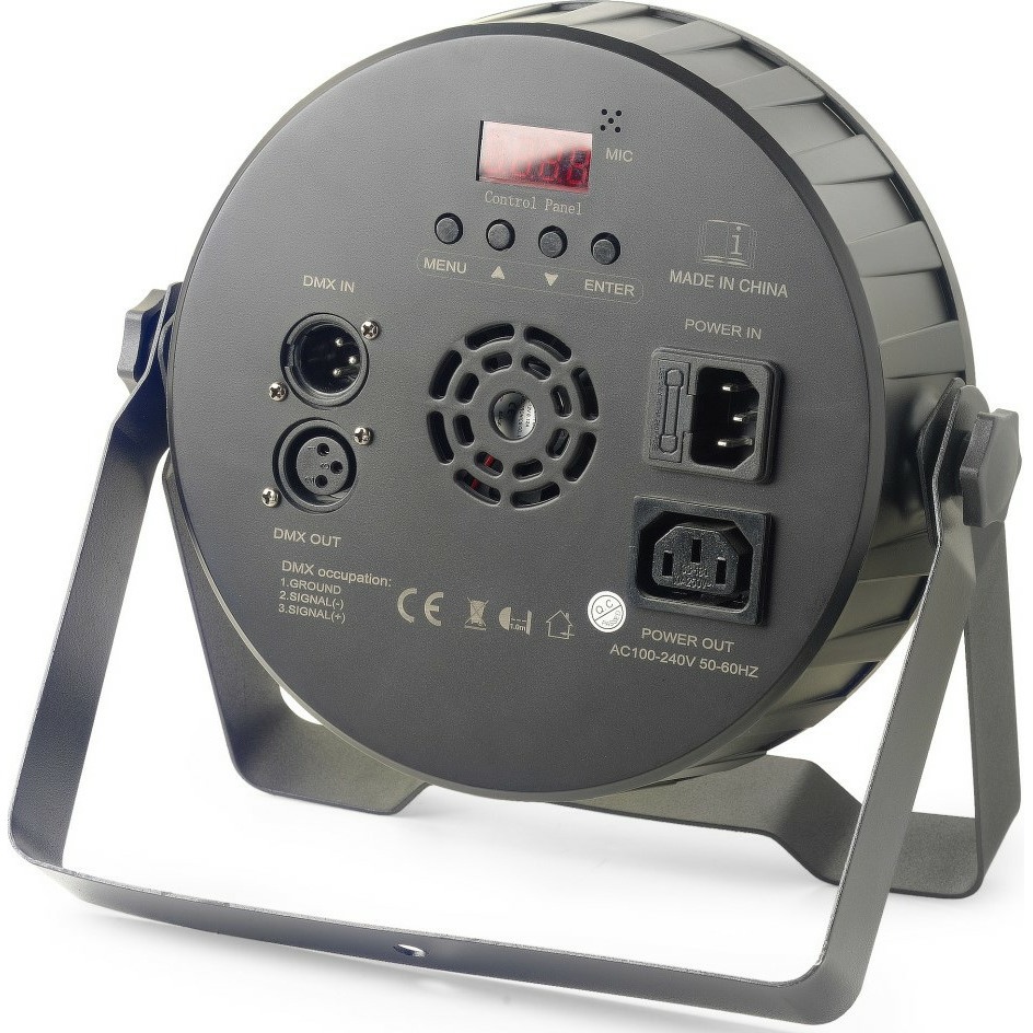 Световой прожектор Stagg SLI-ECOPAR36-2 Spotlight использует 36 диодов по 1 Ватт мощности на 1200 люкс при 40° угла раскрытия луча. Управление происходит по протоколу DMX-512. Этот световой прибор может работать в режиме диммера, стробирования и многого другого
