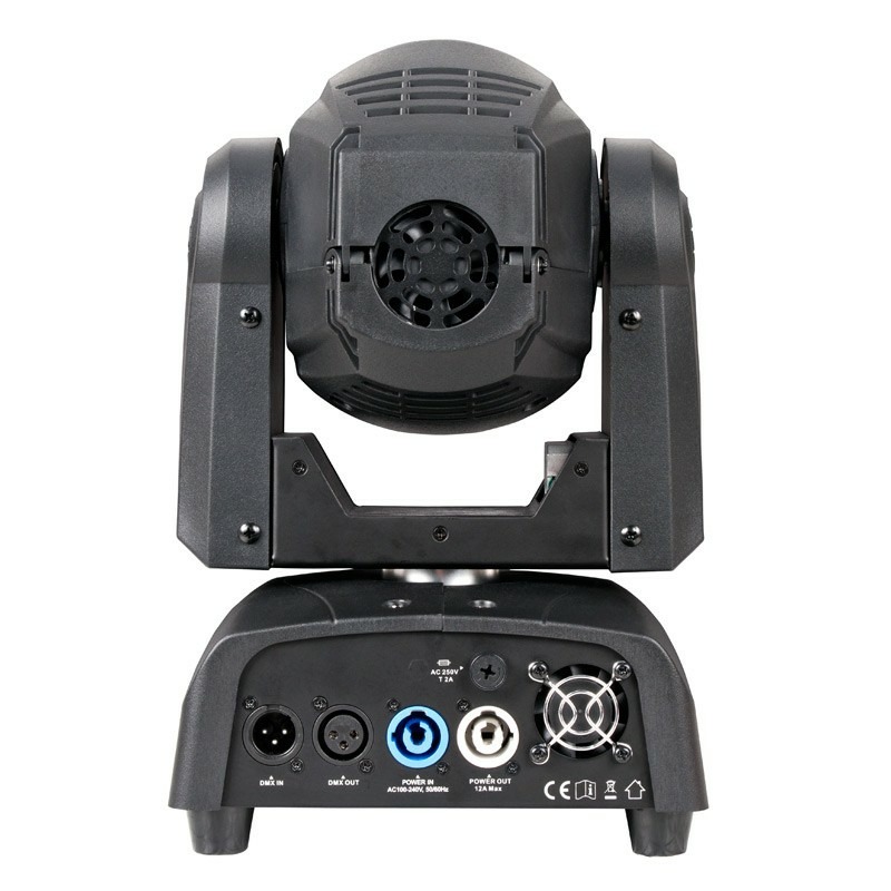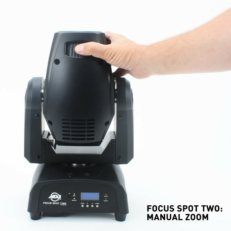 American DJ Focus Spot Two профессиональная поворотная голова типа Spot с дополнительным фиолетовым светодиодом 3W для разнообразных цветовых оттенков. Устройство имеет светодиодный источник света мощностью 75 Вт (рассчитанный на 50 000 часов работы), 540° угол панорамирование, 230° угол наклона, 16-битное разрешение движения, моторизованный фокус и ручной зум 15-20°. Цветное колесо имеет восемь цветов плюс белый. Также стоит отметить гобо колесо, которое имеет шесть вращающихся/взаимозаменяемых гобо.