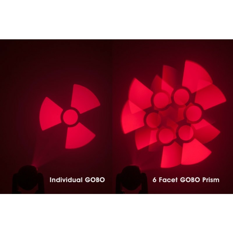 Гобо имеют эффекты тряски и прокрутки, а также могут быть дополнительно обработаны с помощью эффекта шестигранной призмы. Это приспособление имеет пять выбираемых кривых диммирования (standard, stage, TV, architectural, theater). Из дополнительных особенностей можно выделить стробоскоп, random strobe и импульсный эффект.