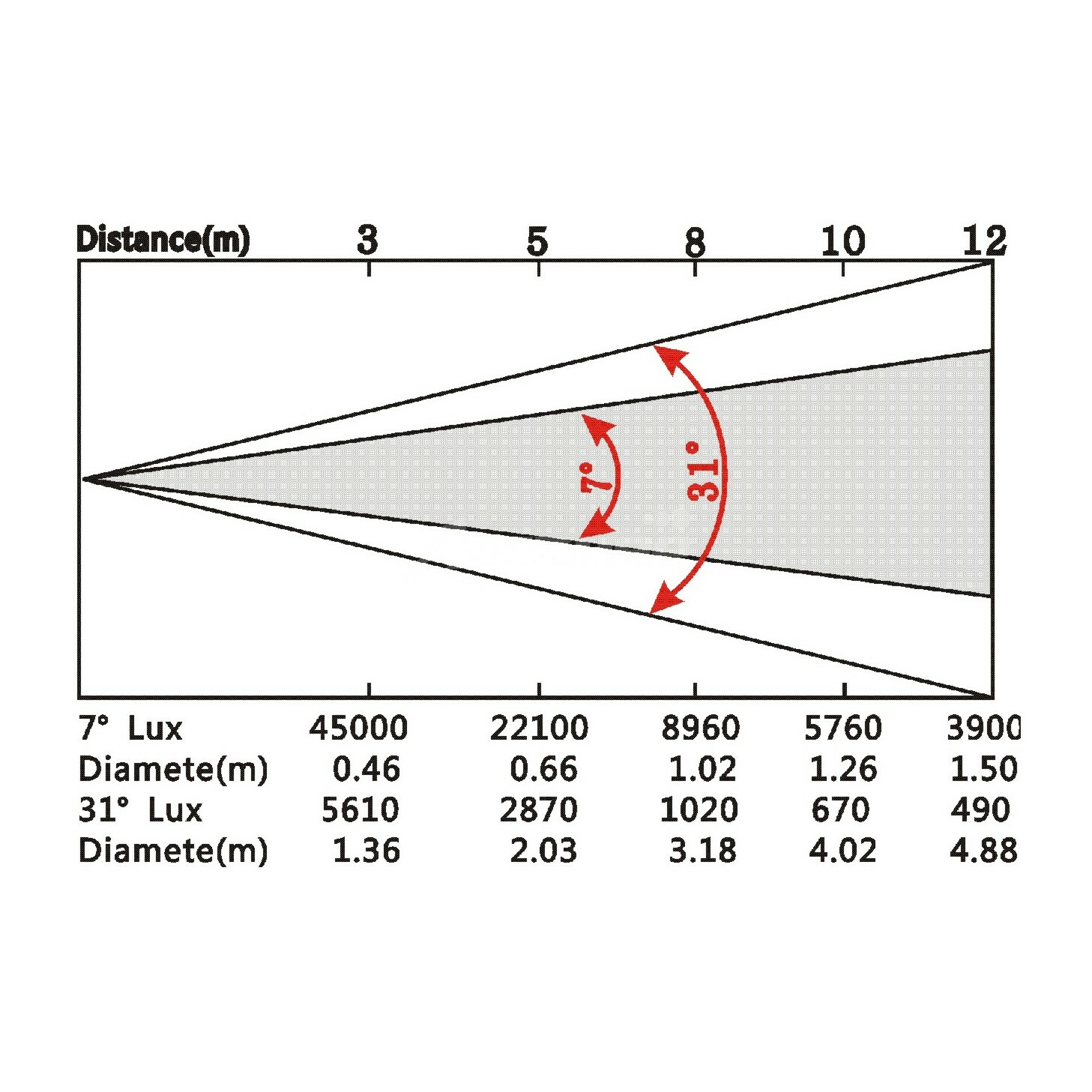 | Угол раскрытия луча | 7°-31° |