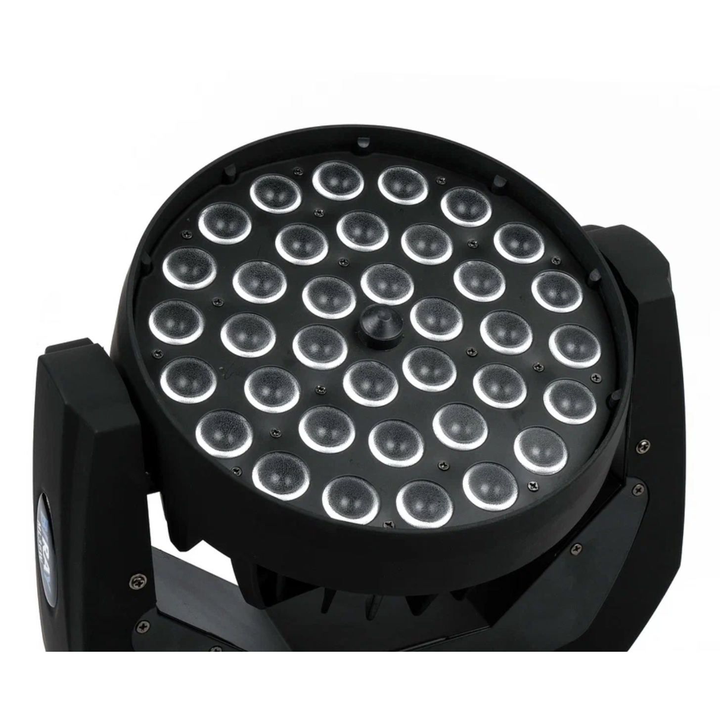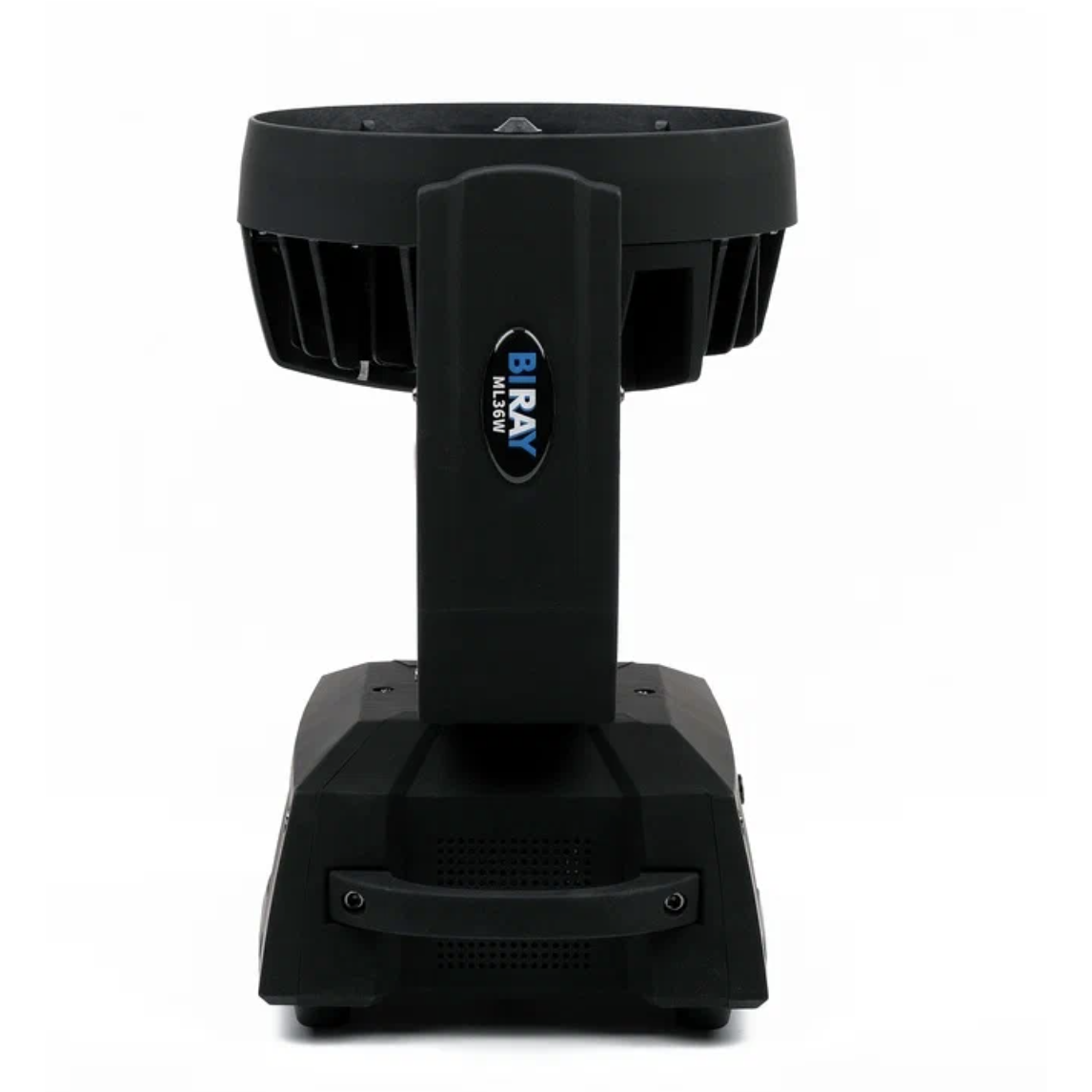 Bi Ray ML36W представляет собой вращающуюся световую голову типа wash с мощностью 36х3Вт (3 в 1). Общая мощность составляет 180 Вт. В качестве источника света в устройстве используются 36 RGB светодиодов красного синего и зеленого цветов. ML36W имеет три режима управления: авто, активация звуком и по протоколу DMX. Угол раскрытия луча в данной модели может быть 8°, 15°, 30°, 45°, 60°. В работе используются два эффекта - wash и zoom.