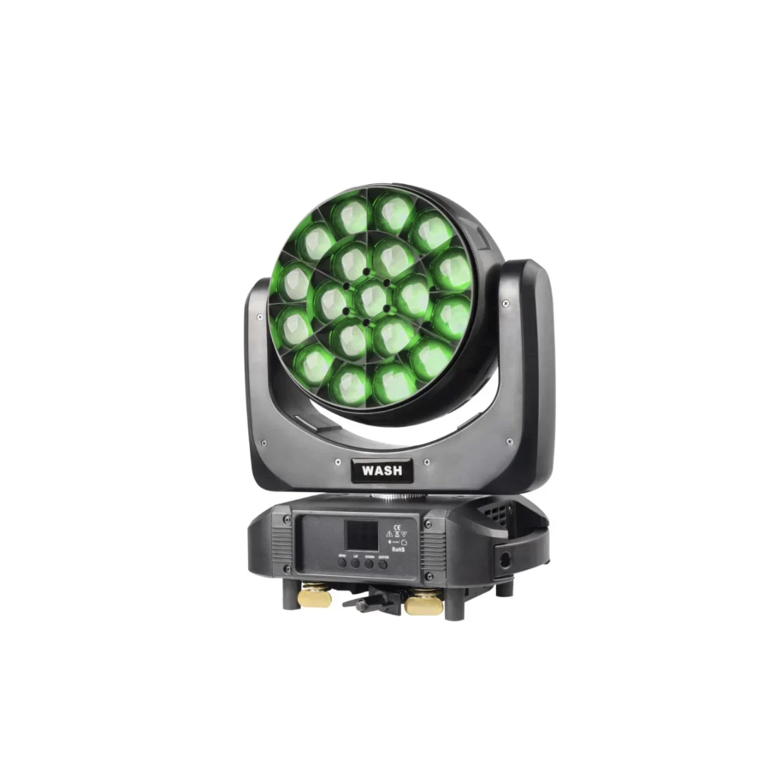 Это вращающаяся голова типа Wash с 19 светодиодами RGBW мощностью 20 Вт каждый. Прибор предназначен для сценических и студийных применений, подходит для создания заливающего света, динамических эффектов и инсталляций.