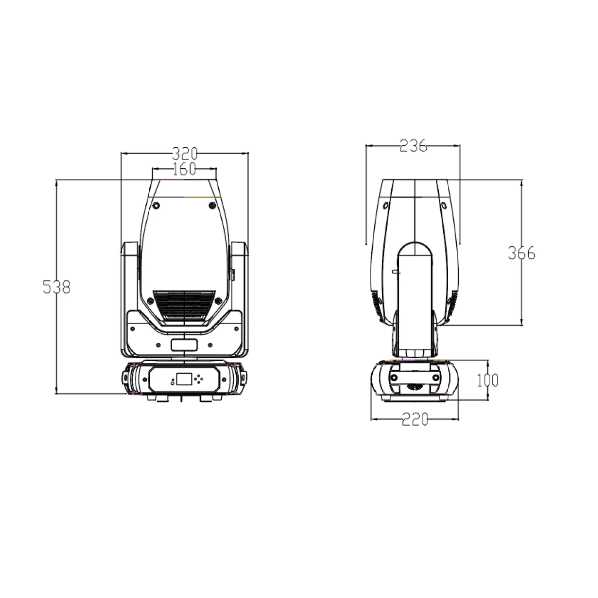 Вращающаяся голова типа SPOT со светодиодом мощностью 280 Вт. Предназначена для создания динамичных световых эффектов в сценических постановках, клубах, на мероприятиях и в других проектах, где требуется точное управление светом