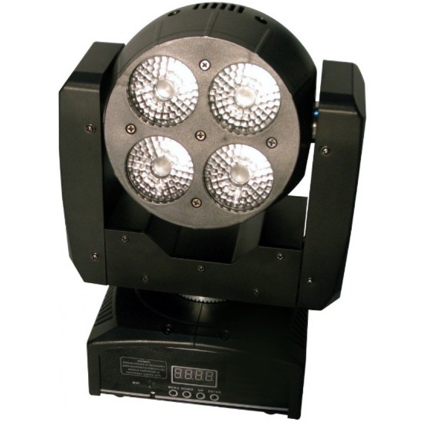 Компактная движущаяся голова с двойным эффектом BEAM/WASH. Голова работает в две стороны, с одной стороны эффект BEAM с 12-ватным светодиодом CREE RGBW (4 в 1), с другой стороны головы эффект WASH с четырьмя 10-ватным светодиодами RGBW (4 в 1). Одним прибором вы убиваете двух зайцев, получаете два эффекта и усиливаете эффект при использовании двух эффектов сразу. Кроме этого голова имеет возможность беспрерывного вращения по Tilt, что делает прибор еще более интересным.