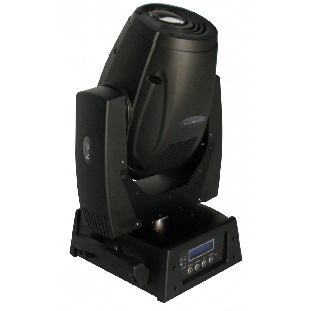 Euro DJ LED SPOT 180 это профессиональная светодиодная голова с эффектом «SPOT» от известного производителя световой аппаратуры EURO DJ, которая идеально подойдет для создания световых эффектов на сцене, в небольшом клубе, кафе или другом развлекательном заведении. Она построена на базе мощного 180-ватного белого светодиода, имеет колесо выбора цветов (7 цветов + открытый), колесо статичных гобо (9 гобо + открытый), колесо вращающихся гобо (7 гобо + открытый) и эффект Shaking gobo. Довольно большую функциональность данному устройству придают четыре отдельных режима работы, среды которых: автоматический режим, режим звуковой анимации, режим Master/Slave и режим управление по протоколу DMX-512. Настройка и выбор режимов работы осуществляется при помощи специальных кнопок на задней панели и небольшого LCD-дисплея. Управление по DMX протоколу, позволяет подключать «голову» к внешнему контролеру по одному из 17 DMX каналов, с возможностью синхронной работы нескольких «голов», подключенных на один канал. Благодаря использованию сверхмощных LED элементов (светодиодов), поворотная голова имеет довольно компактные размеры, небольшой вес, малое энергопотребление и способна работать от сети 220 В без дополнительных преобразователей и выпрямителей.