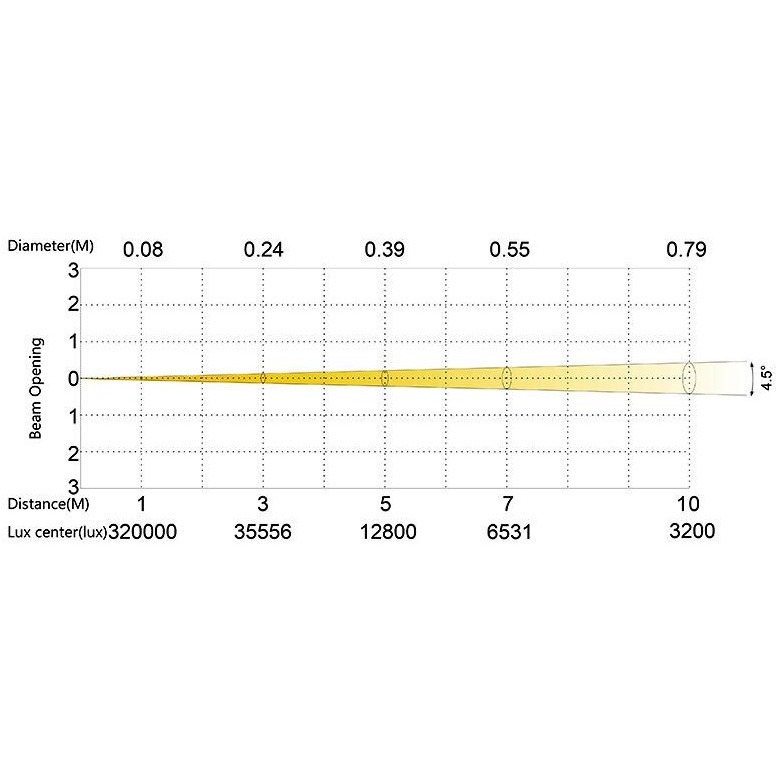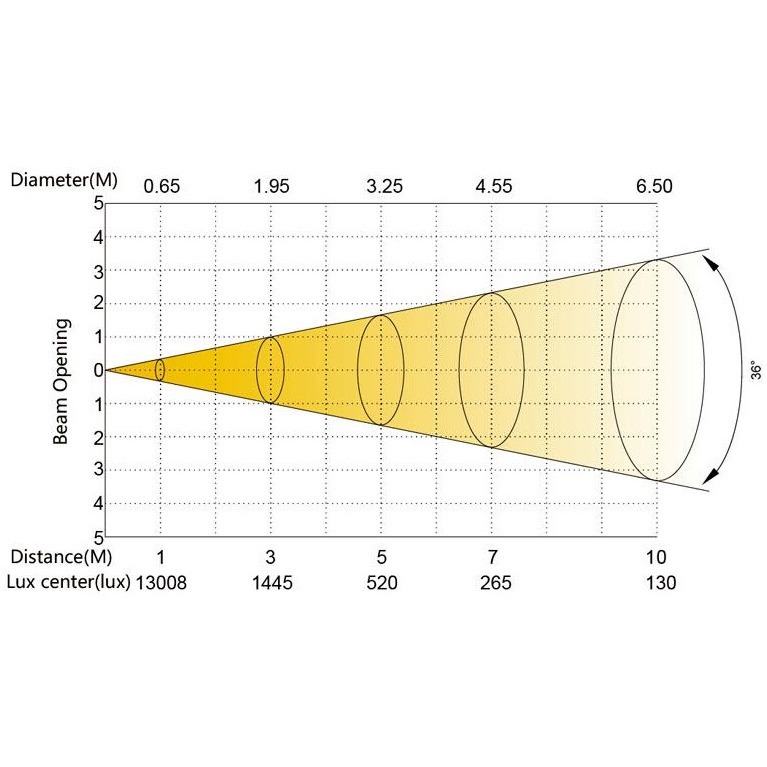 Освещенность в 12800 люкс / 5м при раскрытии луча 4.5 градуса можно сравнить с работой лучших WASH приборов на лампах 575/700 Вт. Максимальный зум в 36 градусов дает широкий и равномерный луч без паразитных цветовых засветок или RGB теней, при этом не дает лишнего широкого поля освещения за пределами своего зума. Фактически – это гибридный BEAM/WASH прибор для многофункционального использования.