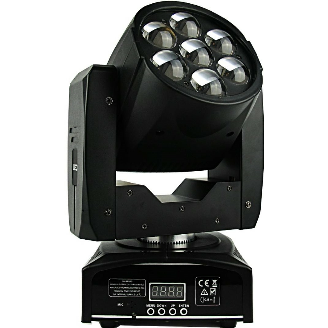 Вращающаяся голова Starlight MH40BZ Moving Eye Beam Head Light with zoom 7x15W 4in1. Световой прибор профессионального уровня с ярким лучом и многоцветной палитрой, плавным диммером, интеллектуальным управлением, контролем температуры, скорости и наклона вращения. Мощные лучи позволяют эффектно осветить помещения баров, ресторанов и украсить различные мероприятия и торжества.