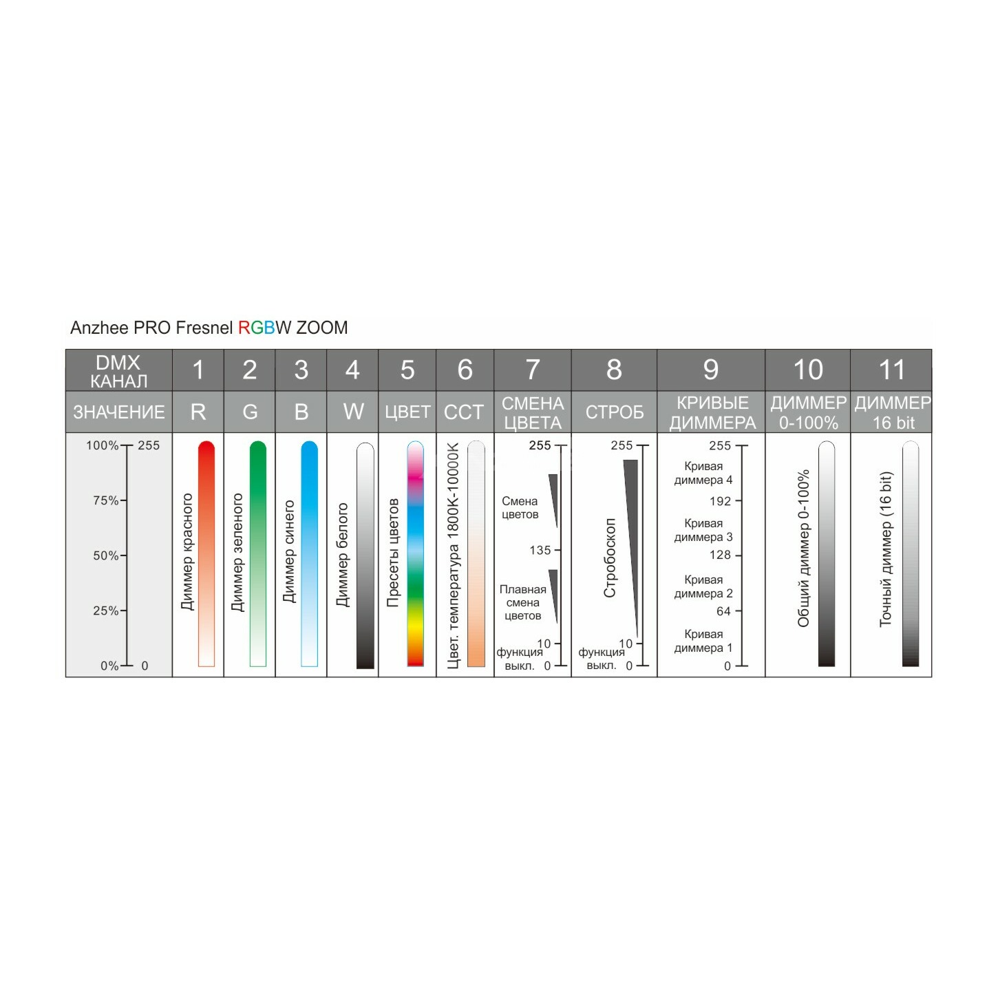 Прожектор театральный линзовый Anzhee PRO Fresnel 200 RGBW ZOOM