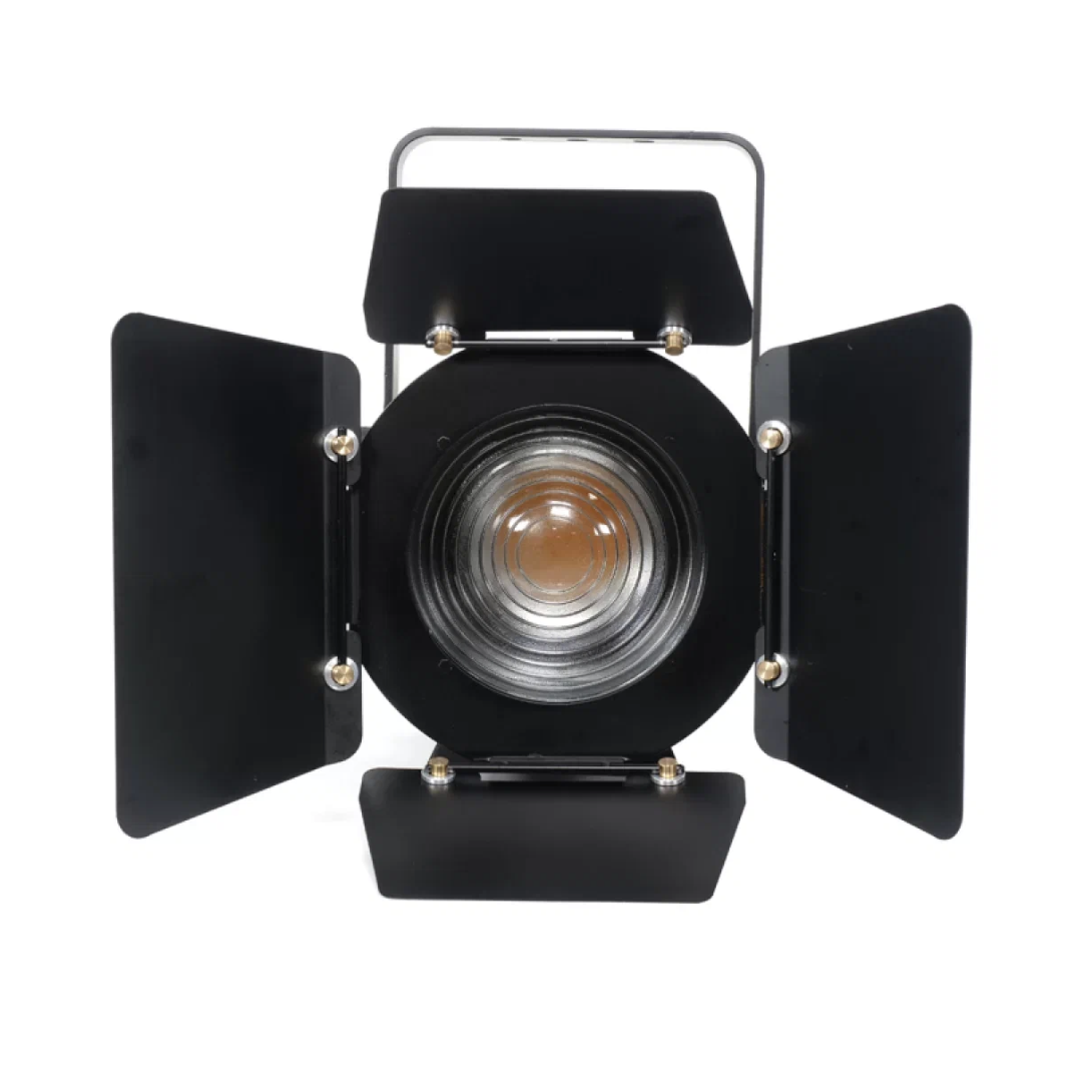 Театральный прожектор с линзой Френеля и пятицветным светодиодом (R, G, B, A, L) мощностью 300 Вт. Предназначен для использования в театрах, на ТВ-площадках и других сценических площадках.