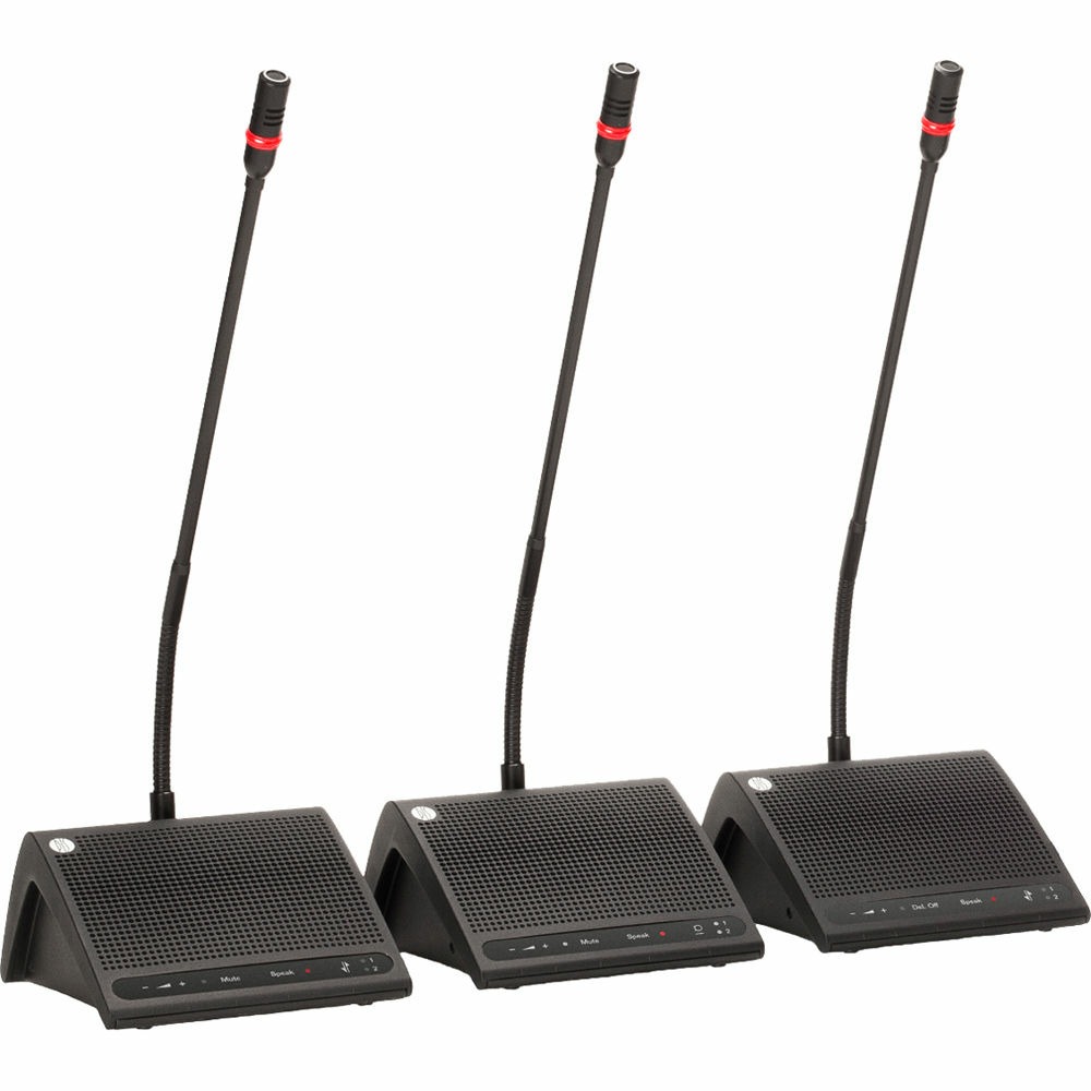 Конфигурация для делегатов и переводчиков поддерживает функцию «Mute» (Отключение звука), которая позволяет пользователю временно отключать его активный микрофон нажатием соответствующей кнопки. Конфигурация для делегатов может быть перенастроена на отключение функции «Mute», чтобы делегат мог пользоваться только кнопкой «Speak» (Говорить).