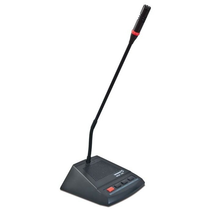 Микрофон директора имеет те же функции и внешний вид, как делегированное микрофон, но с дополнительной приоритетной кнопкой, которая выключает все делегированные микрофоны.