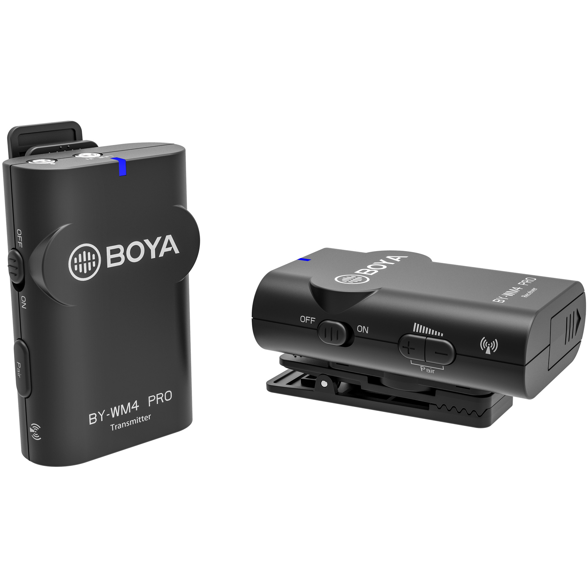 BOYA BY-WM4 Pro разработанный для видеооператоров с ограниченным бюджетом и любителей видеосъёмки BY-WM4 Pro представляет собой 2,4 ГГц двухканальную беспроводную радиосистему нового поколения с возможностью записи двух источников звука прямо на смартфоны, планшеты, камеры DSLR, видеокамеры, ПК и пр.