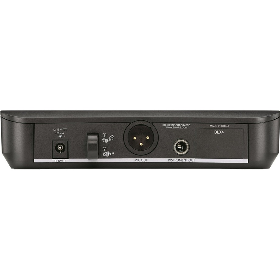 В систему входят: компактный одноканальный приемник BLX4, компактный поясной передатчик BLX1, а также кардиодиный конденсаторный инструментальный микрофон PGA98H-XLR, ориентированный на запись и подзвучивание во время выступлений духовых инструментов. В комплекте поставляется блок питания, две батареи АА и чехол для хранения и переноски.