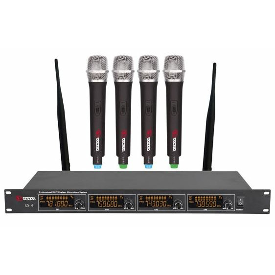 Volta US-4 (716.90/622.665/524.00/520.10) - беспроводная микрофонная система UHF диапазона с четырьмя ручными динамическими микрофонами.