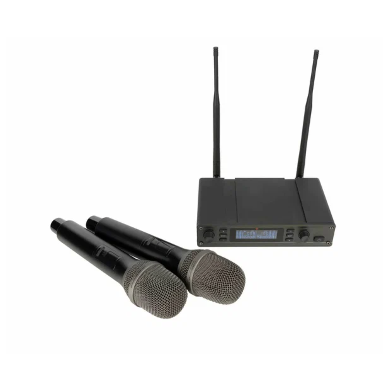 профессионального уровня с DSP-процессором. Она включает два ручных микрофона и двухканальный приёмник, предназначенный для вокалистов, ведущих и сценических исполнителей. Система обеспечивает чистое звучание без помех и минимальную задержку сигнала (менее 3 мс).
