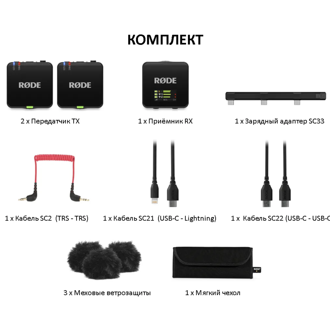 | Разъёмы | 3,5 мм TRS на передатчике, USB-C и 3,5 мм TRRS на приёмнике |