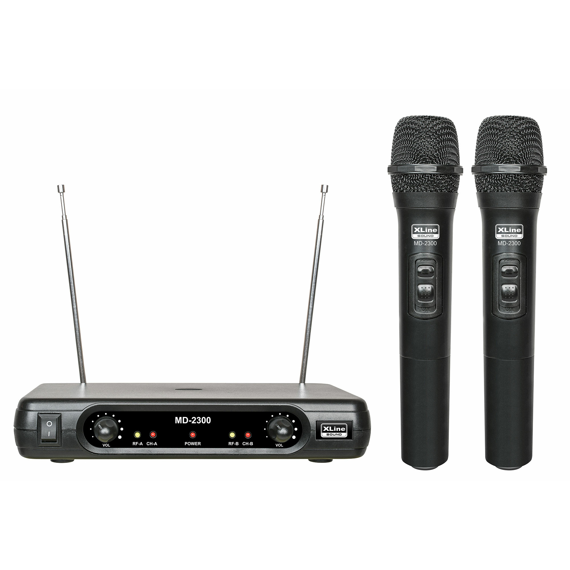 Xline MD-2300 - радиосистема двухканальная c двумя ручными передатчиками, фиксированные частоты, частотный диапазон VHF 200-290 мГц, аудиочастотный диапазон 60 Гц- 15 кГц, батарея передатчика: 2 х 1.5 В, радиус действия передатчика 50 м. Выполнена из высококачественных компонентов и материалов, благодаря чему обладает высокой надежностью и долговечностью.