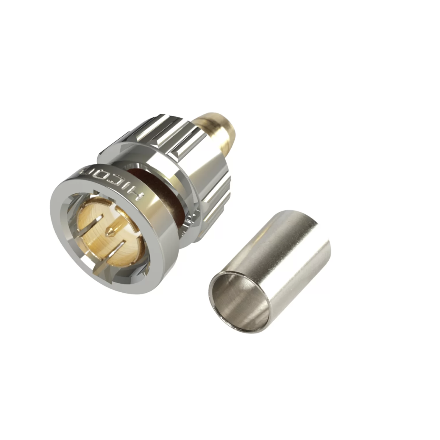 Разъем HICON BNC 0.8/3.7 6G-SDI 75 Ом, штекер на кабель, позолоченные контакты под обжим, количество контактов: 2, металлический металлический корпус, байонетное соединение