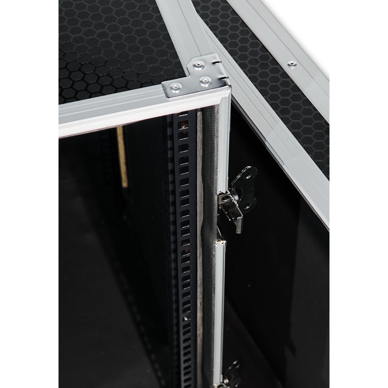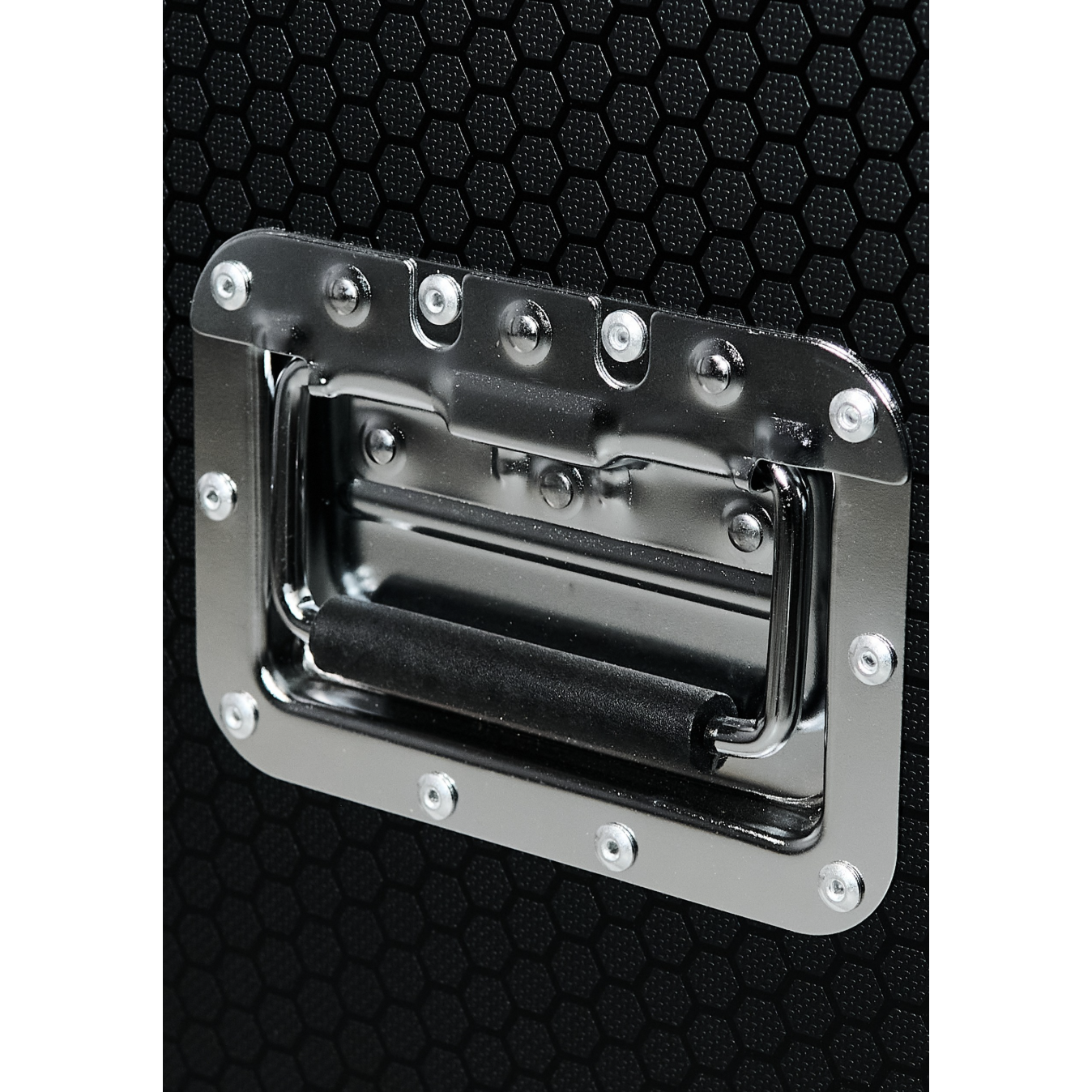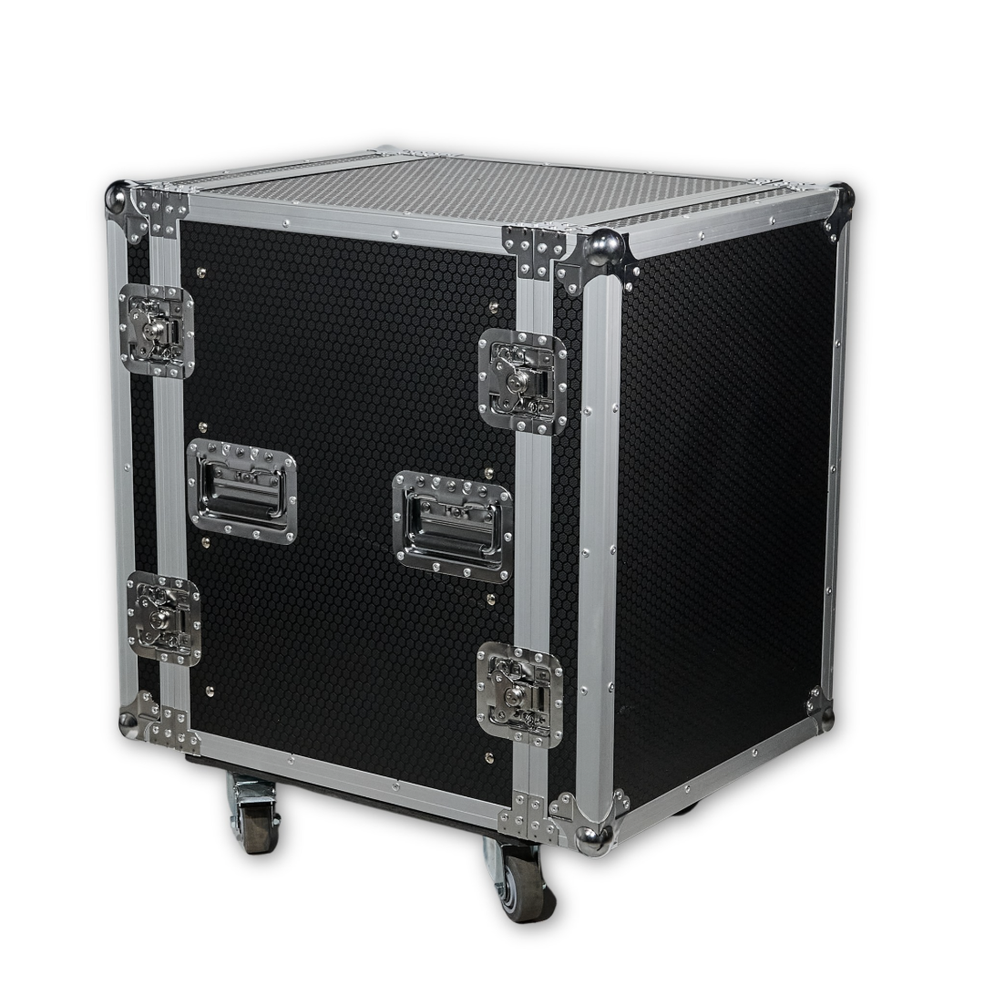 деревянный; ламинированная фанера 9мм; глубина 500мм; две крышки; 8 замков-бабочек; 4 врезные ручки; 4 бесшумных колеса 3", 2 тормоза, рэковые направляющие с фронтальной и тыльной стороны.
