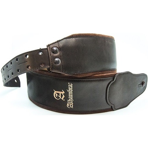 Alhambra 9.515 - широкий и мягкий коричневый гитарный ремень обеспечивает комфорт при игре стоя, а хорошее сцепление делает его отличным ремнем для тяжелых инструментов. Изготовлен вручную в Испании из натуральной кожи. Хорошо подойдет для любых инструментов, как акустических, так и электро и бас-гитар.Отрегулировать длину можно от 98 до 153см. Простой и разумный дизайн поможет добиться вам внешнего вида, о котором вы мечтаете.